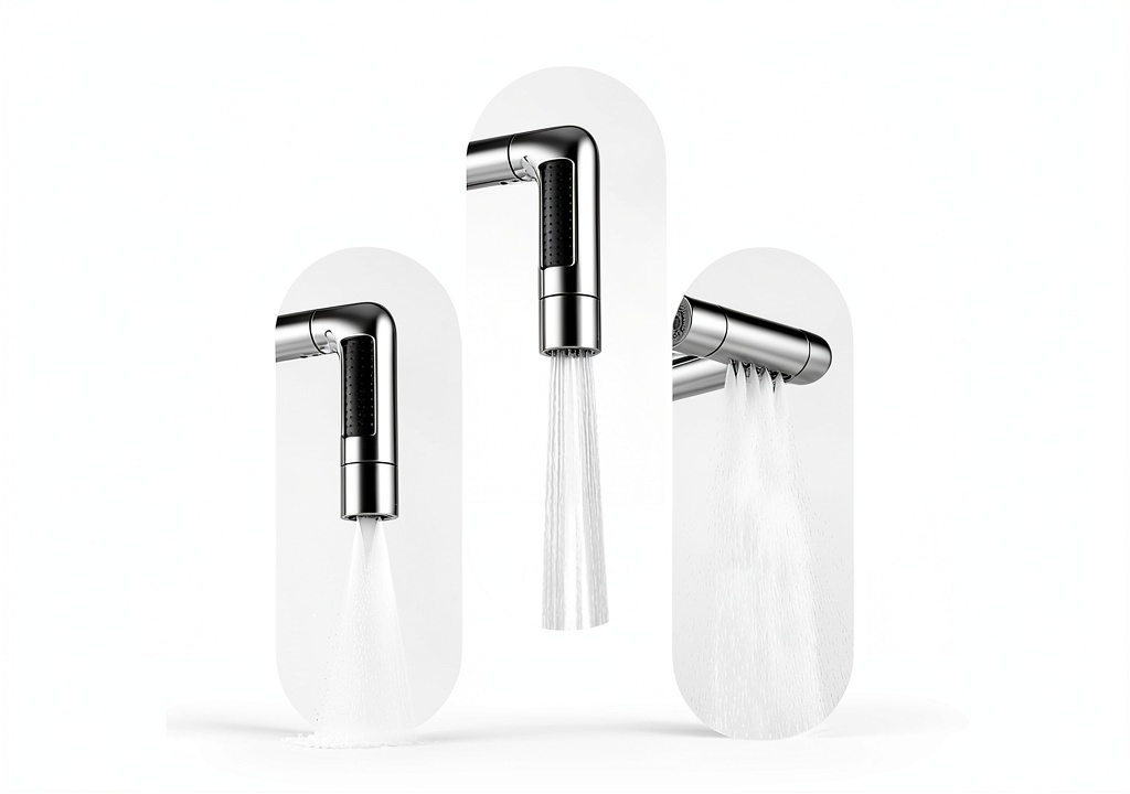 There are five modes: stream for precise rinsing, sweep for powerful cleaning, shower for gentle coverage, and two additional settings to handle various tasks efficiently.